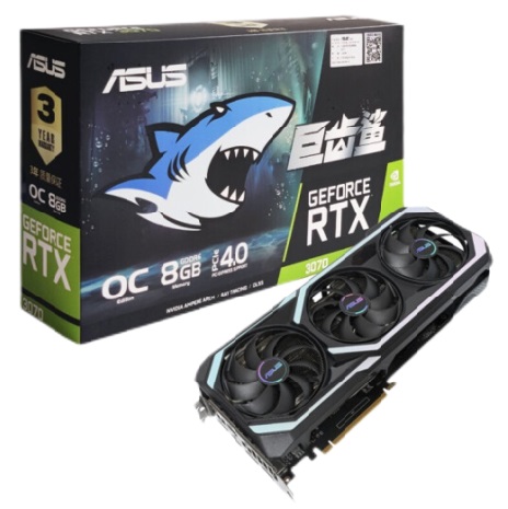 ASUS ATS-RTX3070-O8G-GAMING ATS Megalodon series gaming game professional discrete graphics card. 3 year warranty, Chinese domestic market exclusive. These cards do not have limited hashrate and come with full retail box.